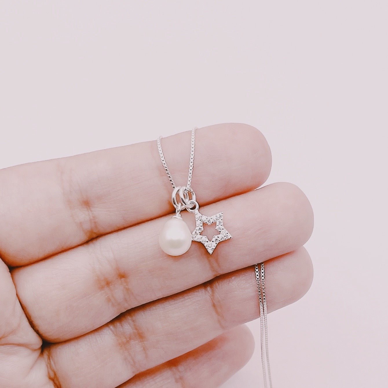 Cadena Estrella Calada Circones & Perla - Plata 925