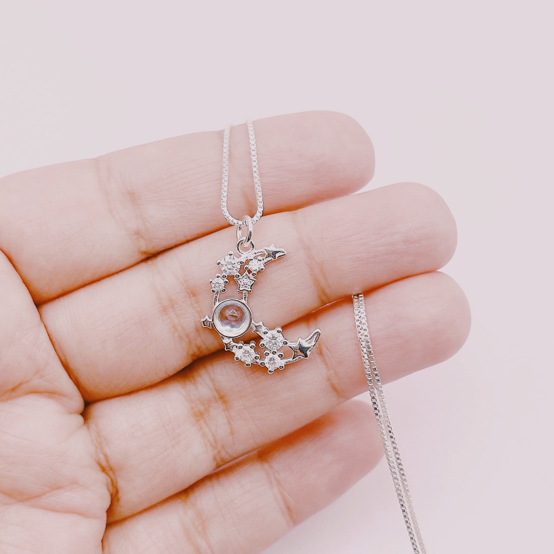 Cadena Luna Estrellada Cuarzo Aura - Plata 925