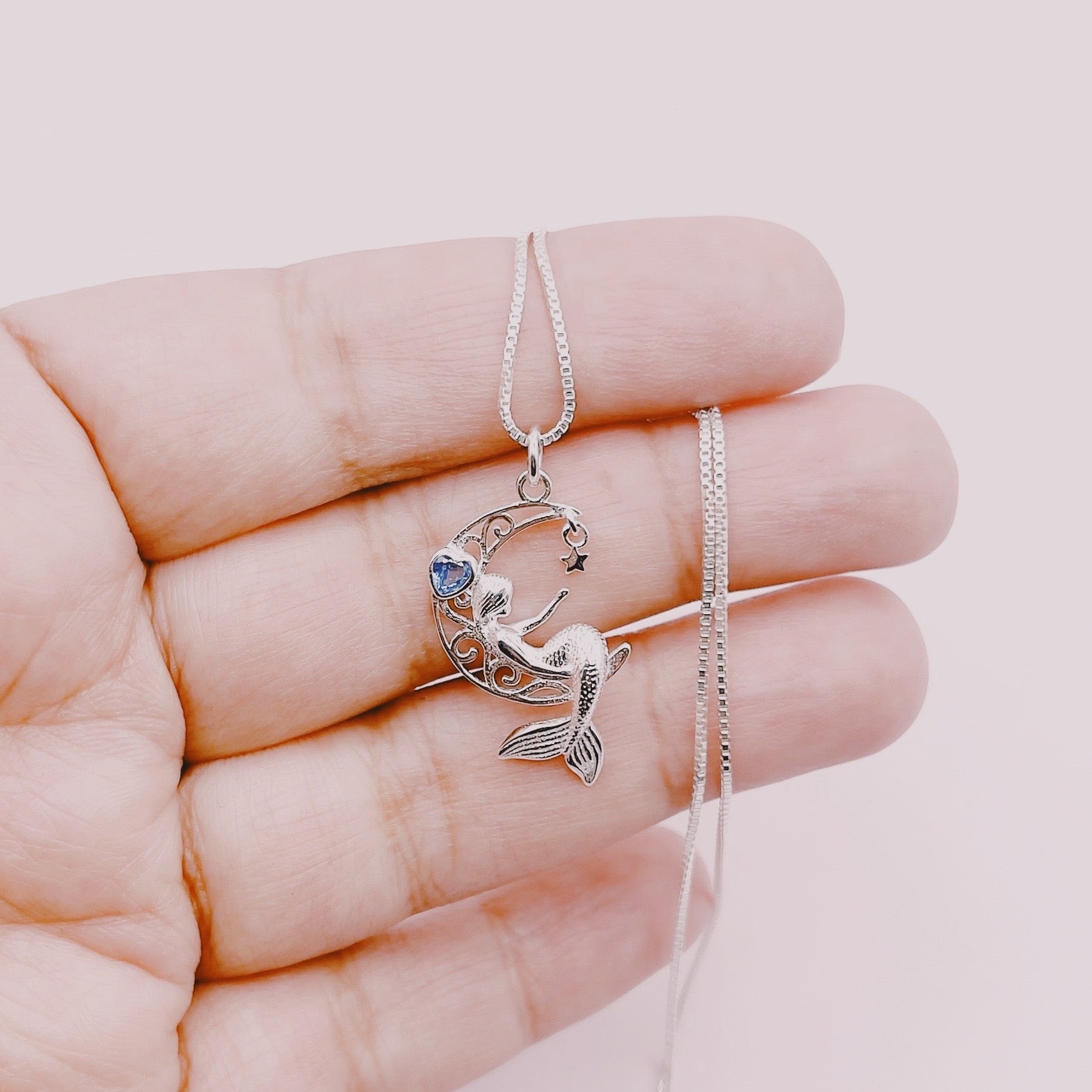 Cadena Luna & Sirena Circón Micro Colgante - Plata 925