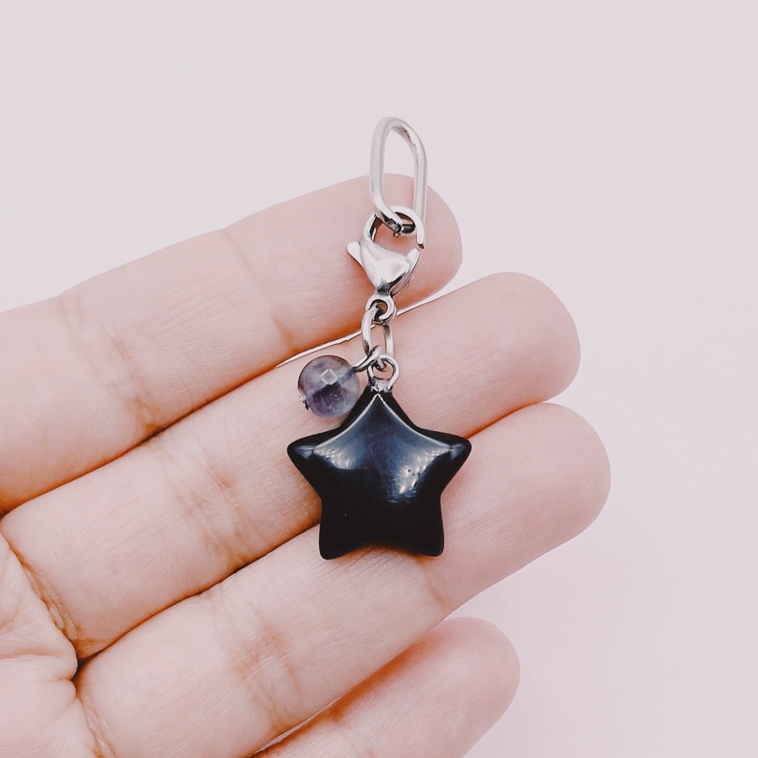 Colgante amuleto para mascotas con piedras. Puedes engancharlo con el broche o ponerle el pasador incluido.