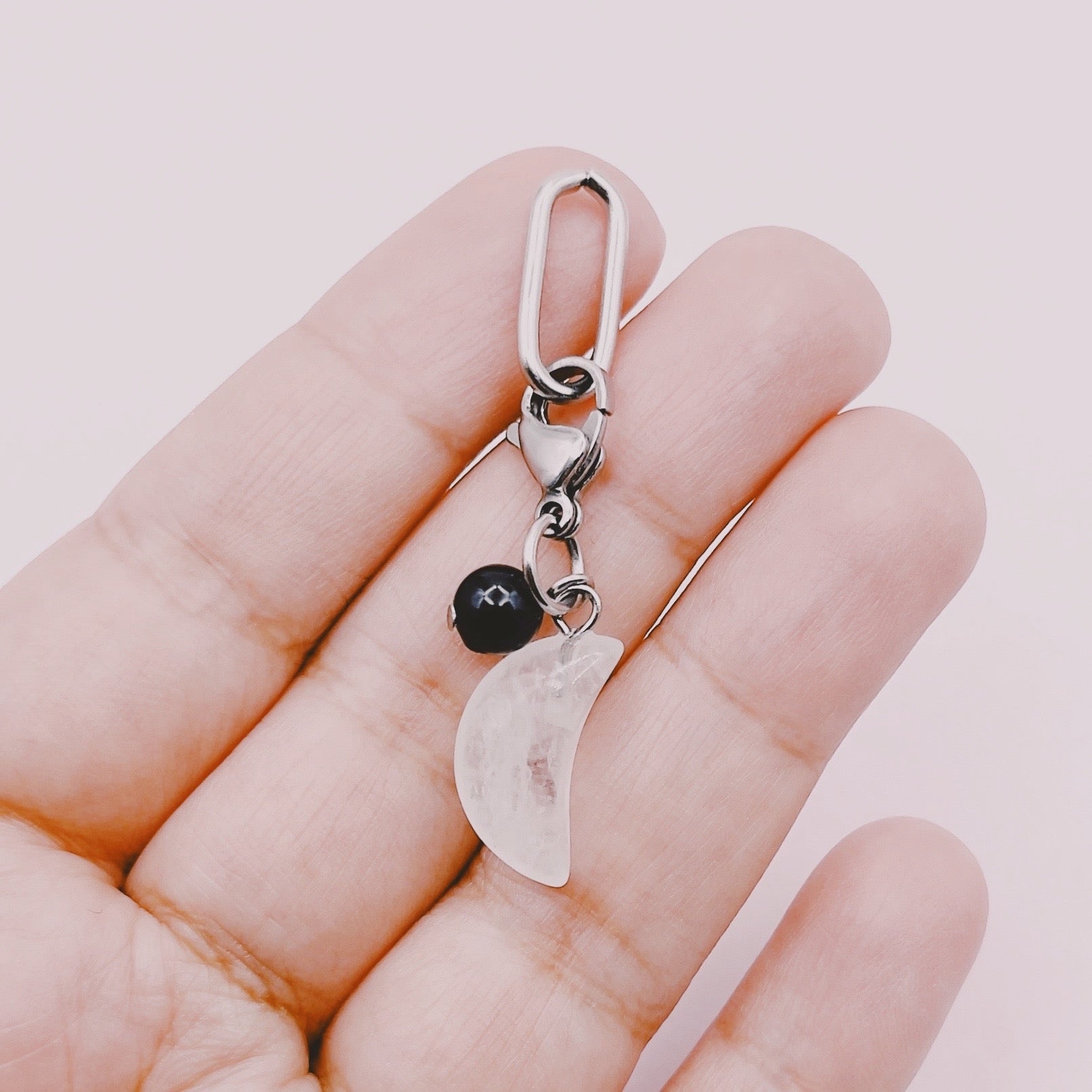 Colgante Mascotas - Luna Cuarzo Cristal & Turmalina Negra
