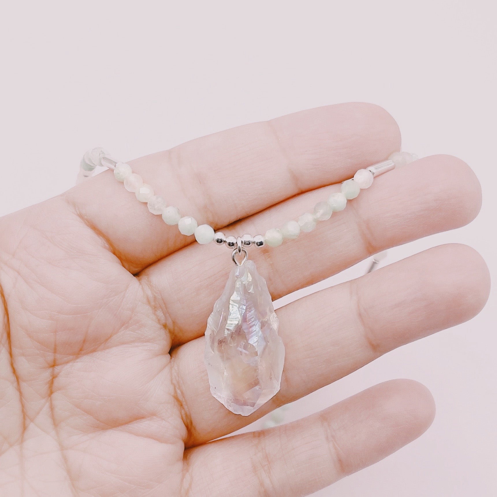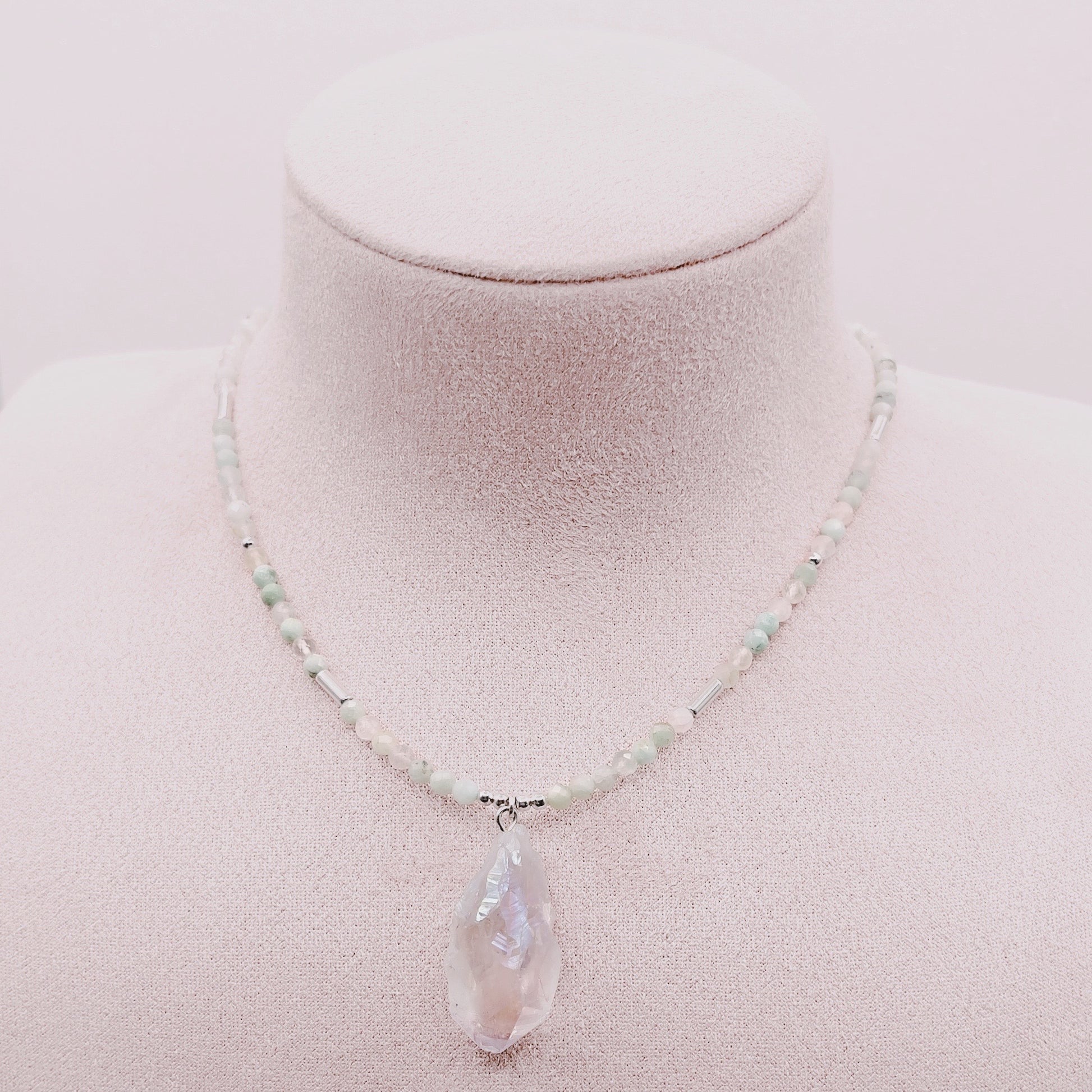 Collar ajustable base amazonitas con gota rústica cuarzo aura y detalles plata 925.