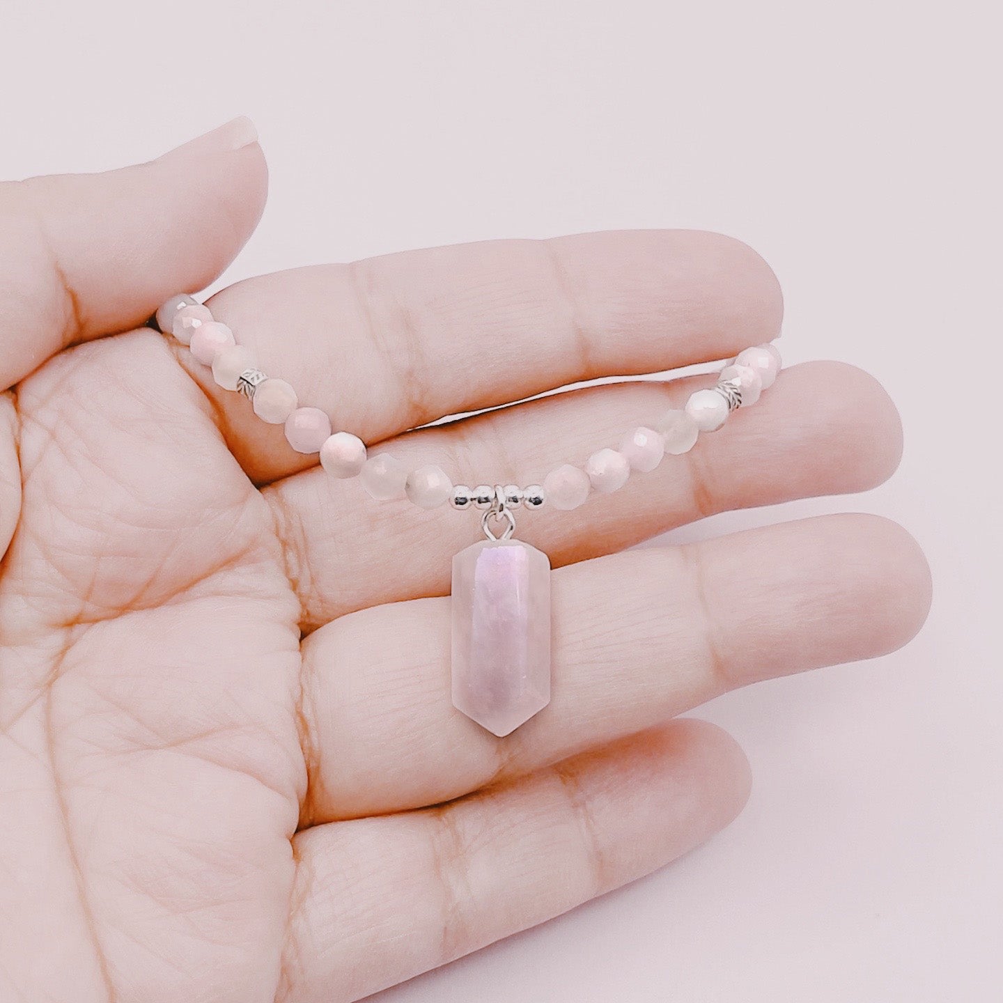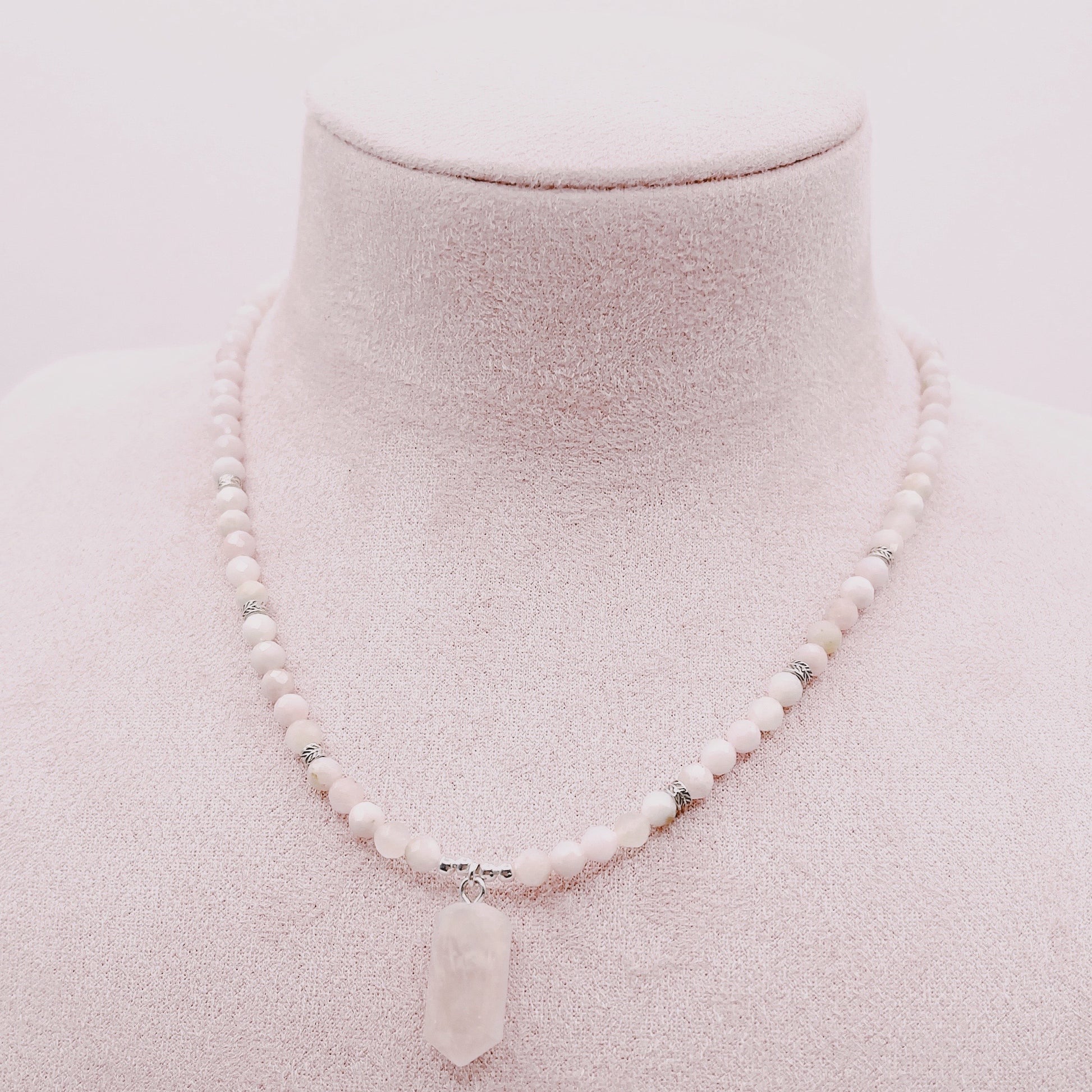 Collar Ópalo Rosa & Punta Cuarzo Rosa Aura - Plata 925